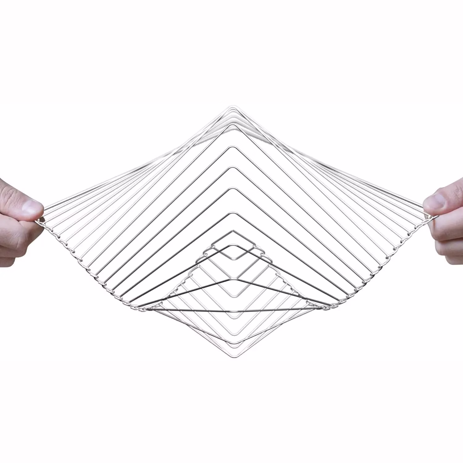 Square Wave is made of steel treated to be used in both indoor or outdoor environments. You can hang it in your garden or patio: Square Wave is made to last. You can admire it In a statuesque standing position, or hang it from the ceiling as a wonderful sculpture, or play with it, as it also becomes a relaxing kinetic toy. Square Wave is the result of extensive prototyping and iterations, in order to find the smoothest balance between weight and length of each metal rod.