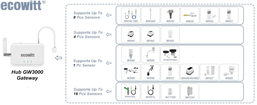 - Compatible with Ecowitt’s range of weather stations and sensors