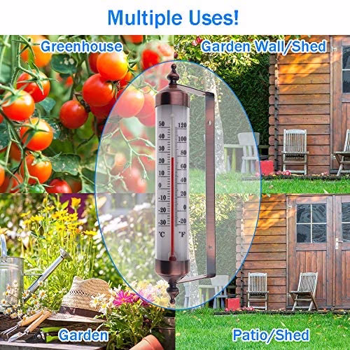 Outdoor Thermometer with Bronze Effect Design – Stylish Garden Thermometer Outdoor Suitable For Outside Temperature Gauge Wall Greenhouse Garage Easy to Hang