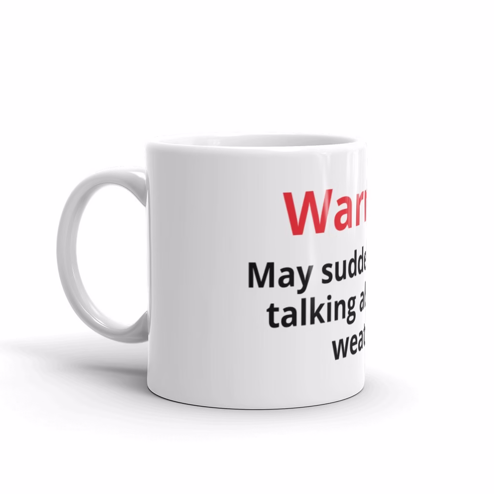 Warning – may suddenly start talking about the weather – 11oz Ceramic Mug