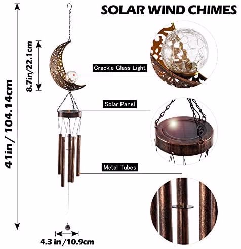 Manufactured from tube metal the chimes, it makes a fantastic addition to your surroundings. Combining light and sound perfectly, this solar-powered wind chime is a joy.