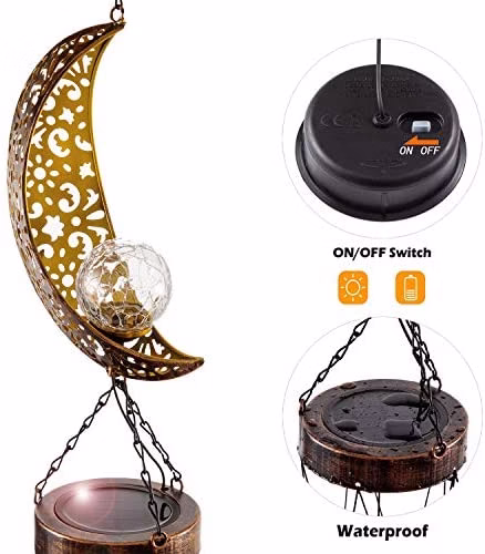 Hang outdoors in the daytime, please turn on the switch before use, solar LED garden lights with light sensors will automatically absorb solar energy and convert it into electrical energy and store it in the solar panel. At night (in the dark), it will automatically illuminate your garden under the garden light and will light for 6-8 hours, which automatically turns on at dusk and off at dawn.